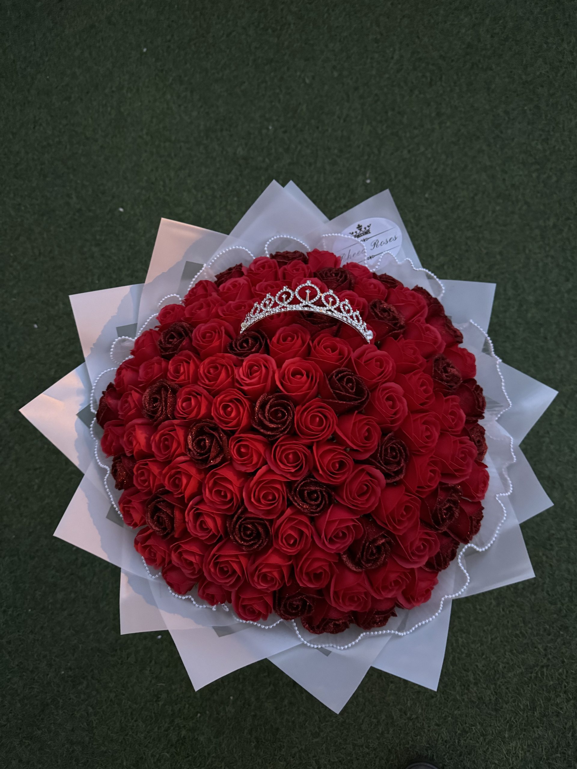 Buchet 101 Trandafiri Sclipici Mix Voal