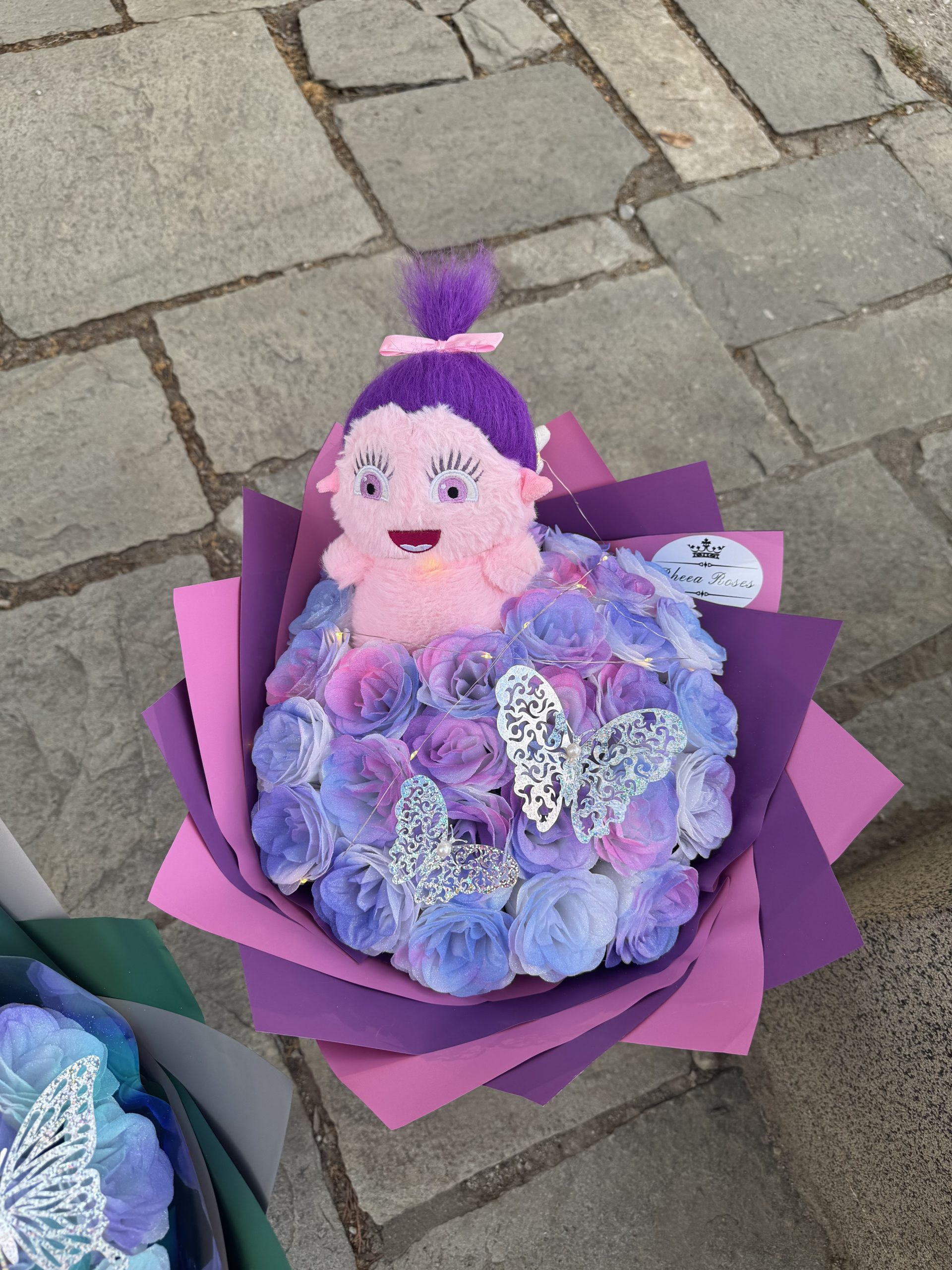 Buchetul contine 29 trandafiri sclipici + jucarie DIZZLE (iubita lui Bibble)