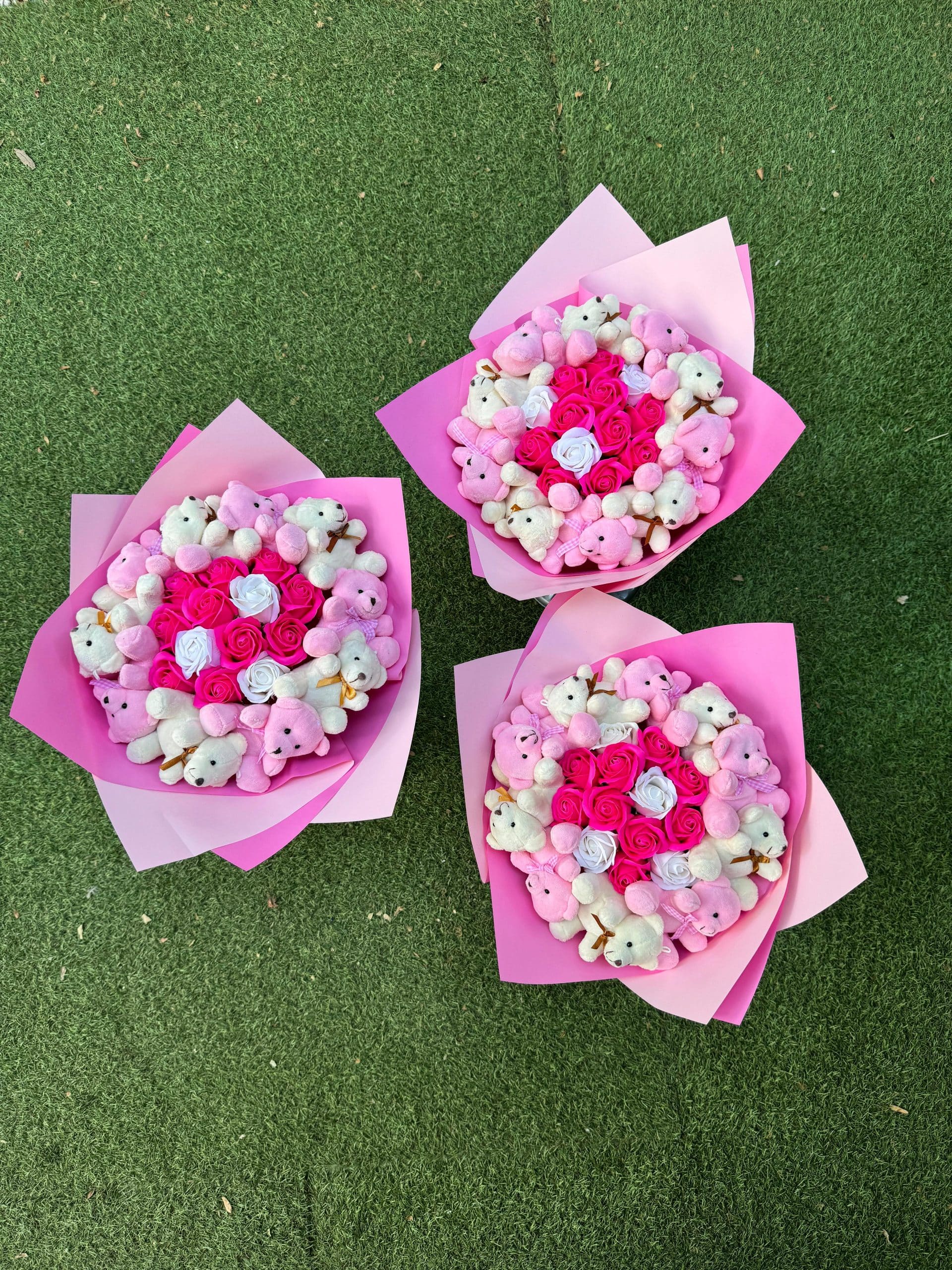 Buchet Ursuleti & Trandafiri Hot Pink Clasic